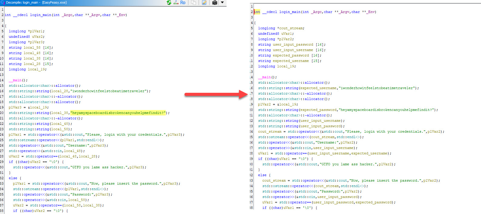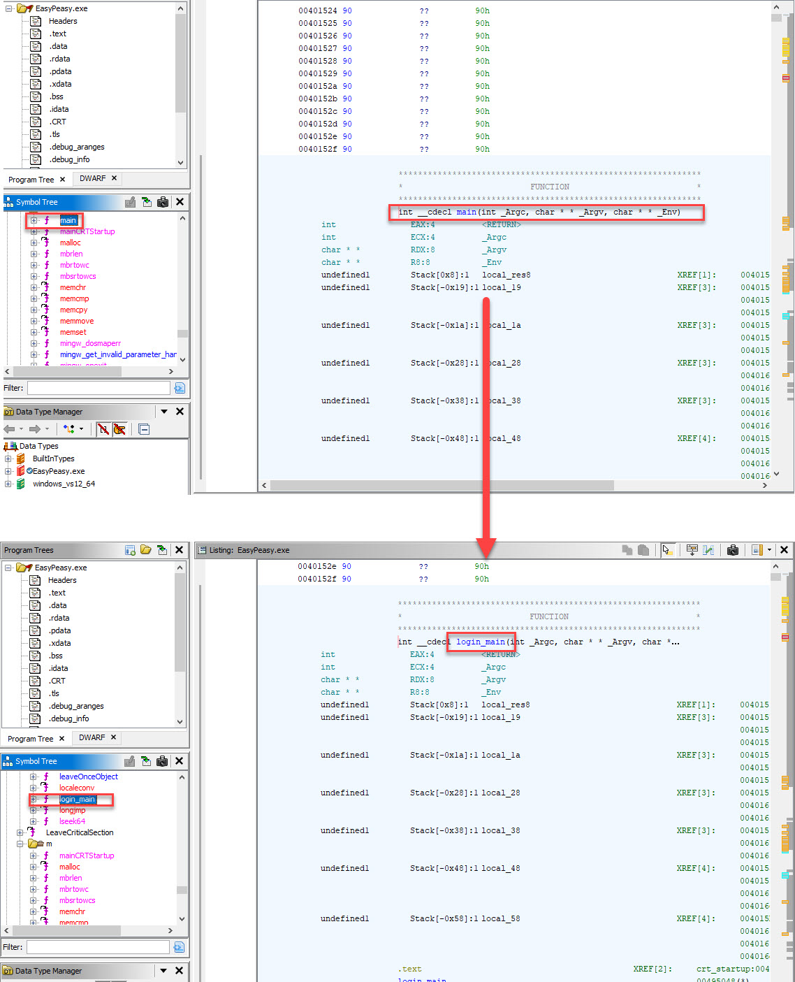 1. Analyze the binary in Ghidra (in het begin zul je bepaalde functies en acties toe moeten staan (altijd of slechts deze keer):